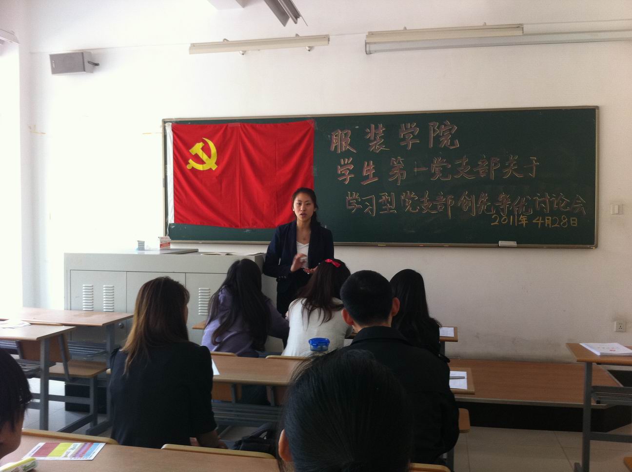 4月28日中午12点,服装学院学生第一党支部积极响应学院党总支号召,在教学楼D114召开迎建党90周年创先争优学习型党支部培育项目工作启动讨论会,会议由学生第一党支部书记邬�t洁老师主持,学生第一党支部部分党员干部出席此次会议。
