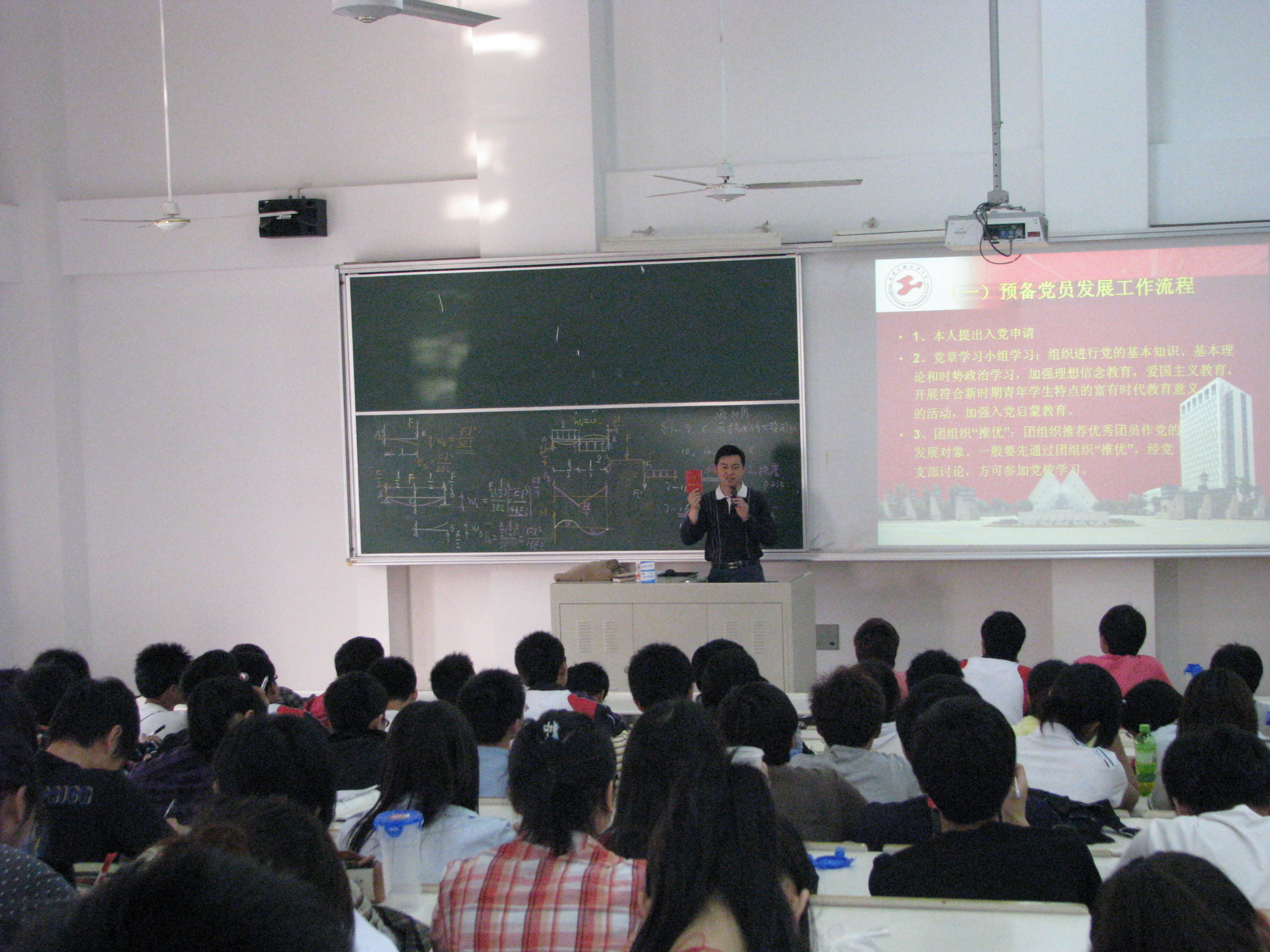 王老师从中共预备党员的发展、转正流程、考察等方面介绍如何成为一名优秀的中国党员。他要求在座的入党积极分子要明确入党动机,端正入党态度,认真学习党章,提高党性认识,争取早日成为中共党员。与此同时,他要求入党积极分子要以党员的标准要求自己,全心全意为人民服务,在日常学习生活中,发挥带头模范作用。