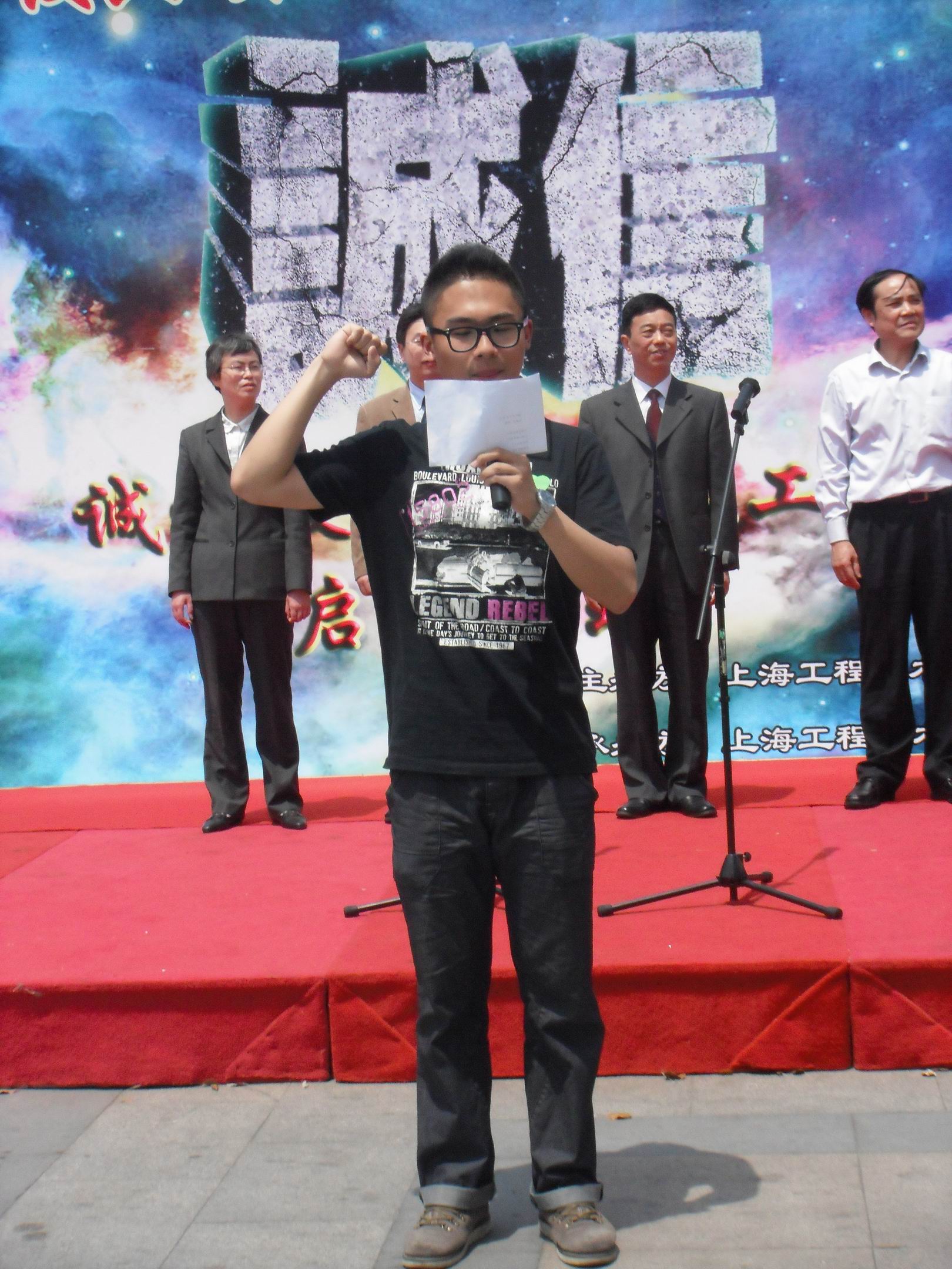 汽车工程学院分团委副书记张成代表学校全体学生宣誓,立志做到:诚信做人、诚信做事、从我做起树立诚实守信的优良学风。