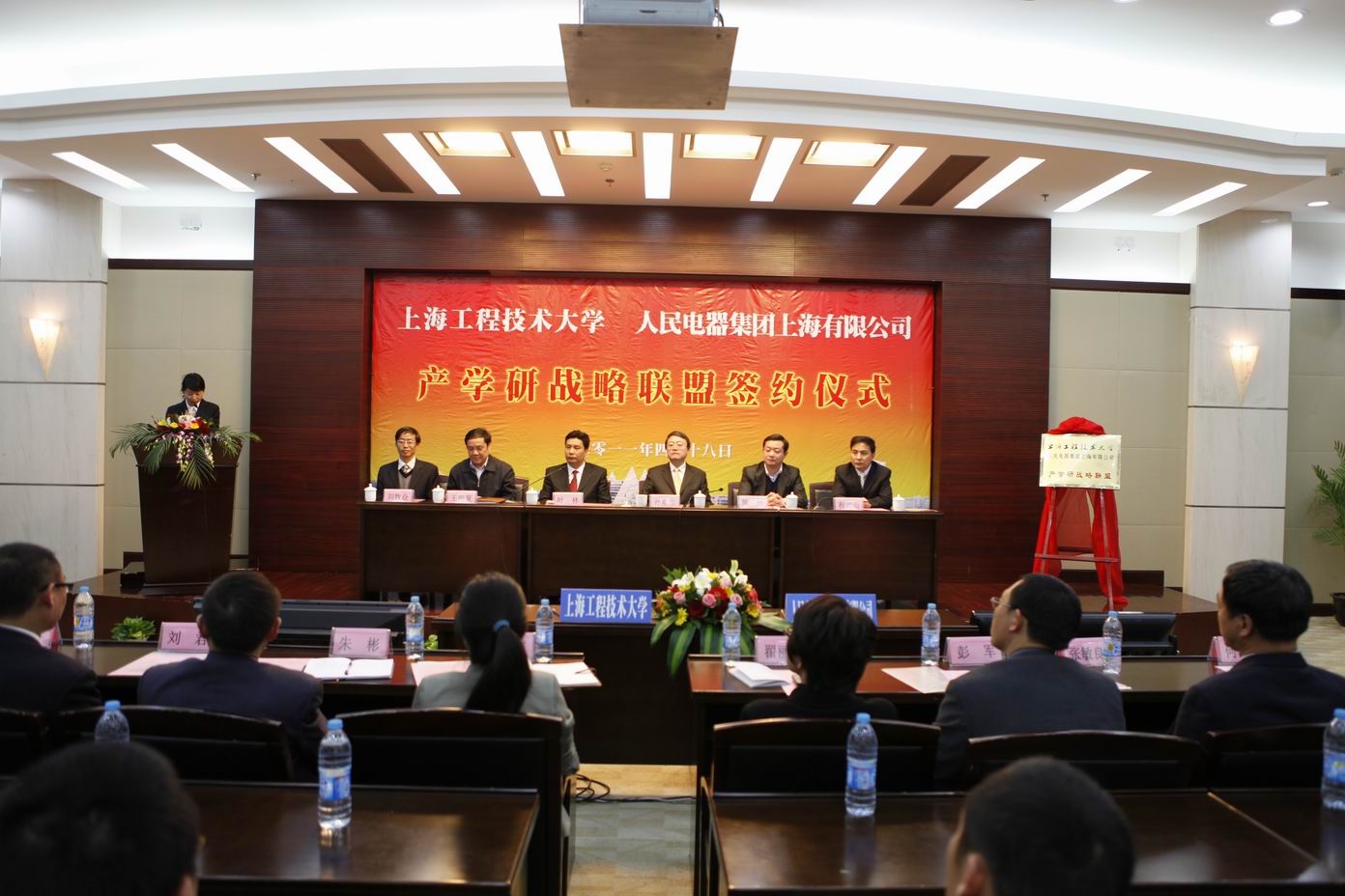 最后,孙培雷副校长代表学校发表了重要讲话。他指出工程大的办学理念就是以学科链对接产业链、全面依靠上海地方经济建设、培养应用型高级人才,此次我校与人民电器集团上海有限公司的合作体现了我校的办学理念,他衷心地希望在双方共同的努力下,我校与人民电器集团上海有限公司的合作能够成为校企合作的又一典范,不断抢占国家乃至世界相关技术的至高点,为上海实现四个率先、加快转变经济发展方式做出应有的贡献。