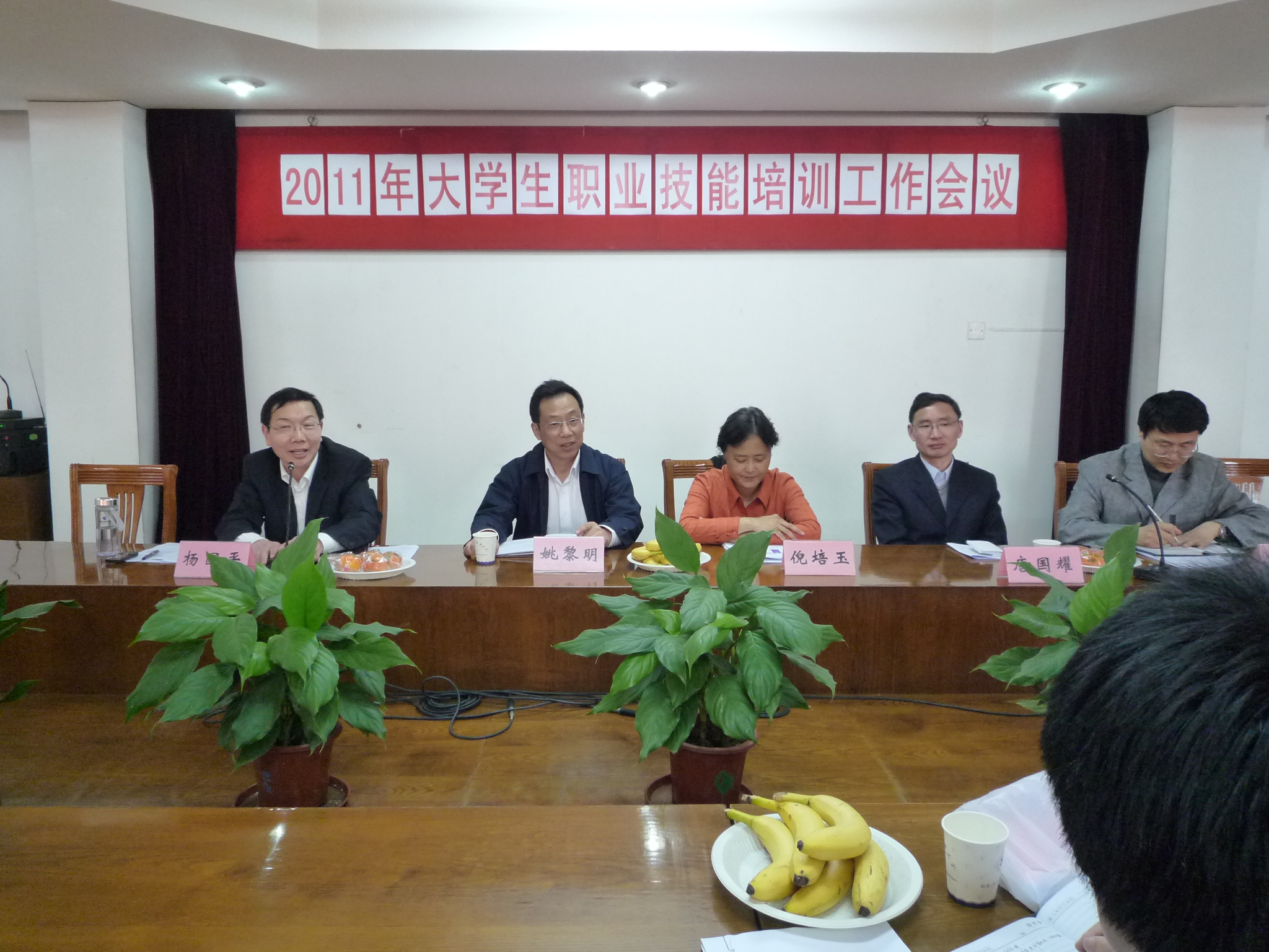 为进一步促进我校的大学生职业技能培训工作,继续教育学院4月14日组织召开了2011年大学生职业技能培训工作会议。教务处分管领导、各学院分管领导和负责老师,以及长宁区人保局有关领导出现了会议。