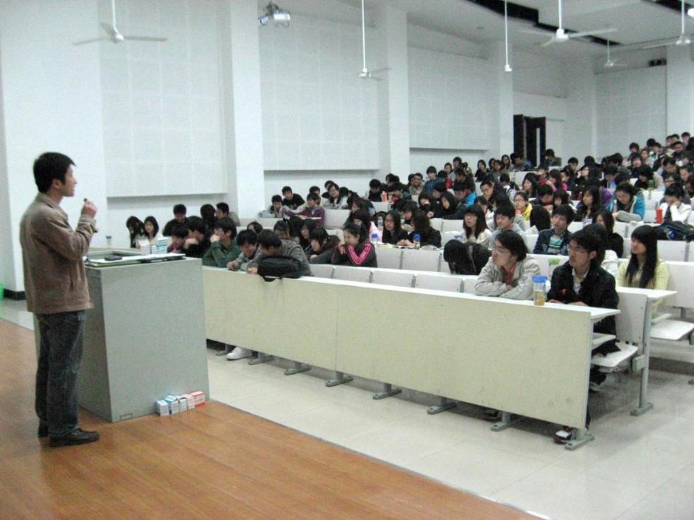4月12日晚六时,F420的教室里座无虚席,化学化工学院举办了一场主题为“准确定位,把握人生”的讲座, 08级220名学生和部分低年级学生参加了讲座。