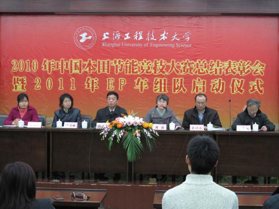 3月25日下午13:00,汽车工程学院在图文信息中心第三报告厅举行了上海工程技术大学2010年中国本田节能竞技大赛总结表彰会暨2011年EP车主队启动仪式。副校长兼汽车工程学院院长陈力华出席了本次仪式,院党总支书记周洁,副院长吴训成、陈凌珊,党总支副书记段海霞,以及汽车工程学院全体老师和2010年参赛学生参加了本次仪式。会议由院党总支书记周洁主持。