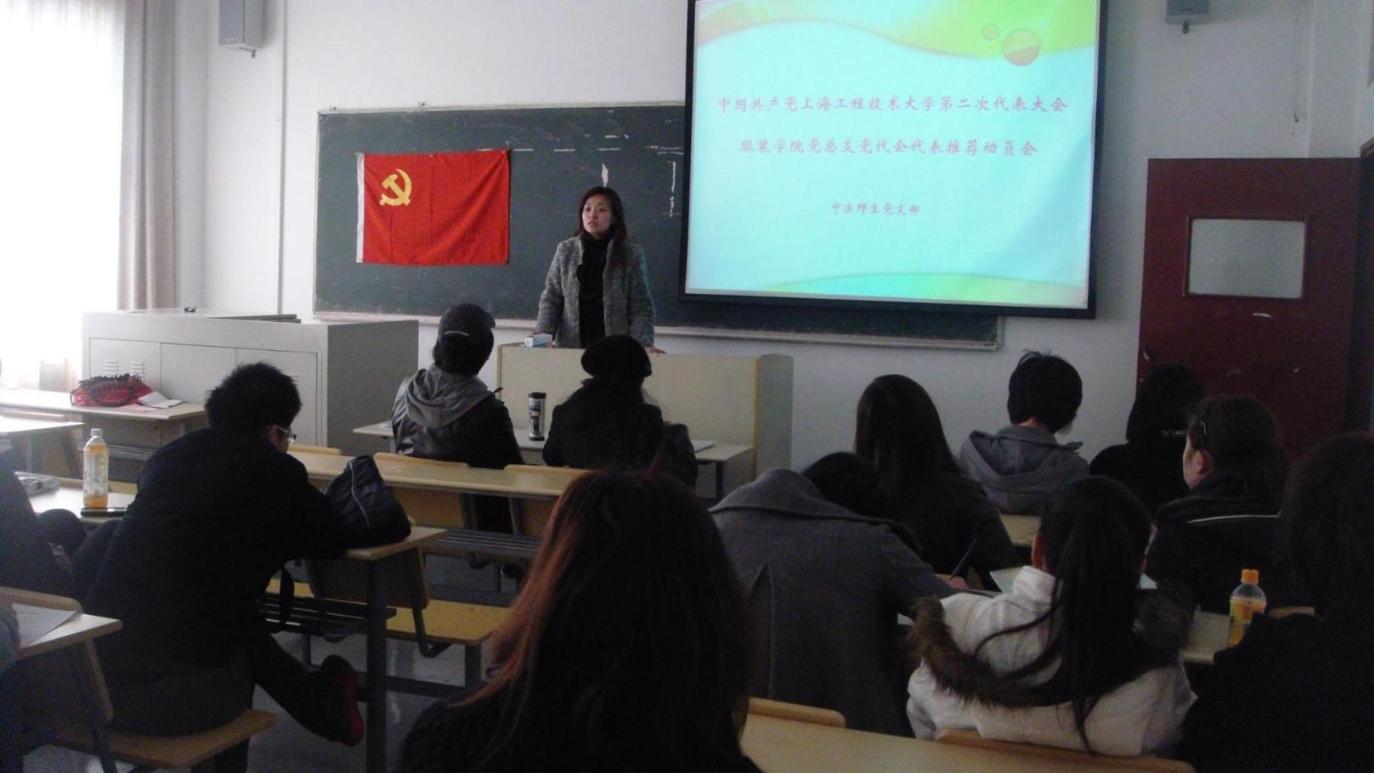 3月24日中午12:30,服装学院党总支在仙霞路校区教学楼多媒体327室召开了中法师生支部全体党员党代会筹备工作动员,并讨论酝酿了本支部的代表候选人。会议由党支部书记胡强主持,参加会议的有院党总支书记袁蓉,组织员郑艳以及中法师生党支部的全体师生党员。