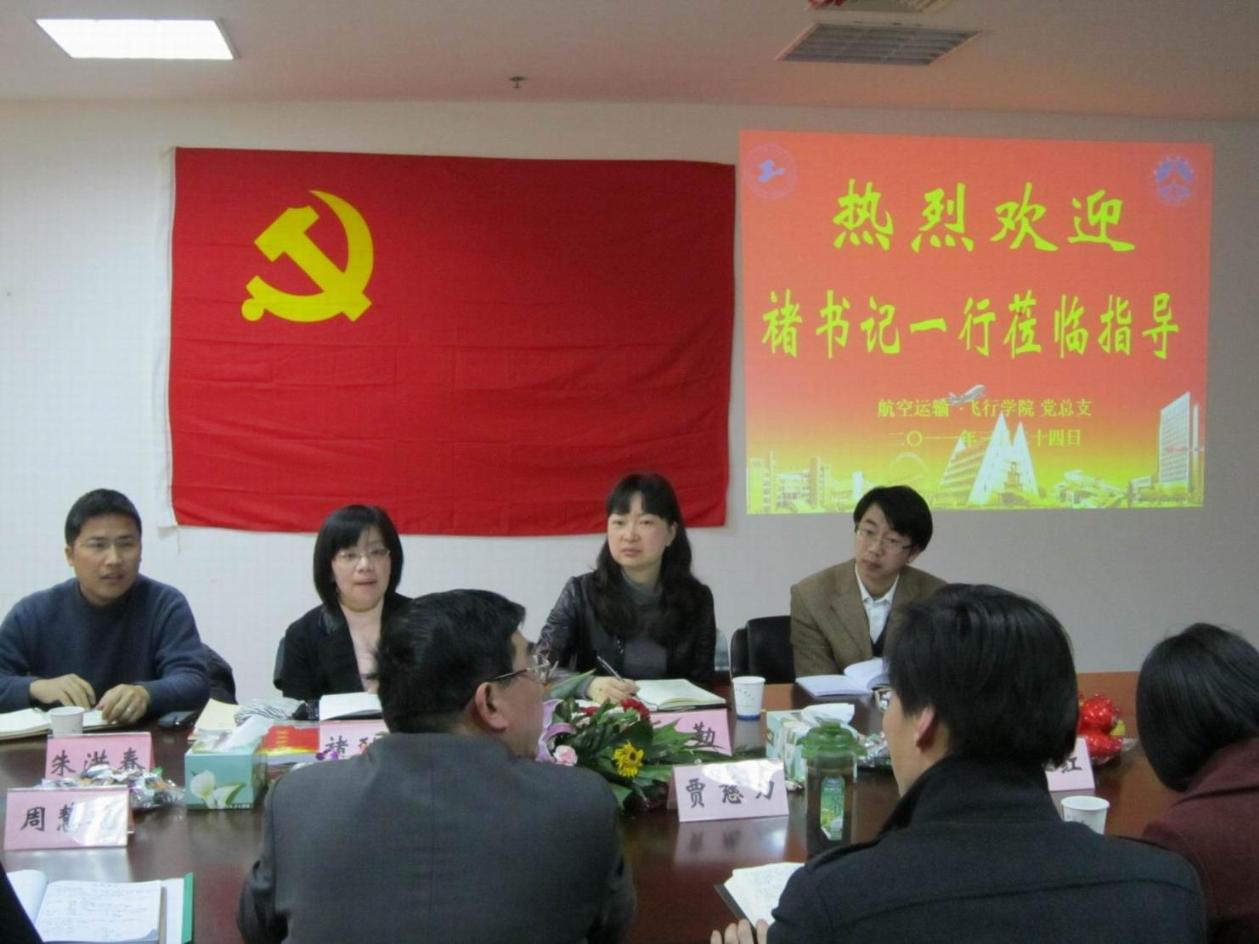 3月24日上午,校党委副书记褚劲风来到航空运输学院·飞行学院调研创先争优活动的开展情况,并与学院总支成员、各支部支部书记就开展创先争优活动的经验做法、工作中存在的问题和困难等进行了座谈。党委组织部副部长王勤、朱洪春,张可涵老师、高锡文老师陪同调研,调研会由航空运输学院·飞行学院总支书记兼学院创先争优活动领导小组组长卫国林主持。