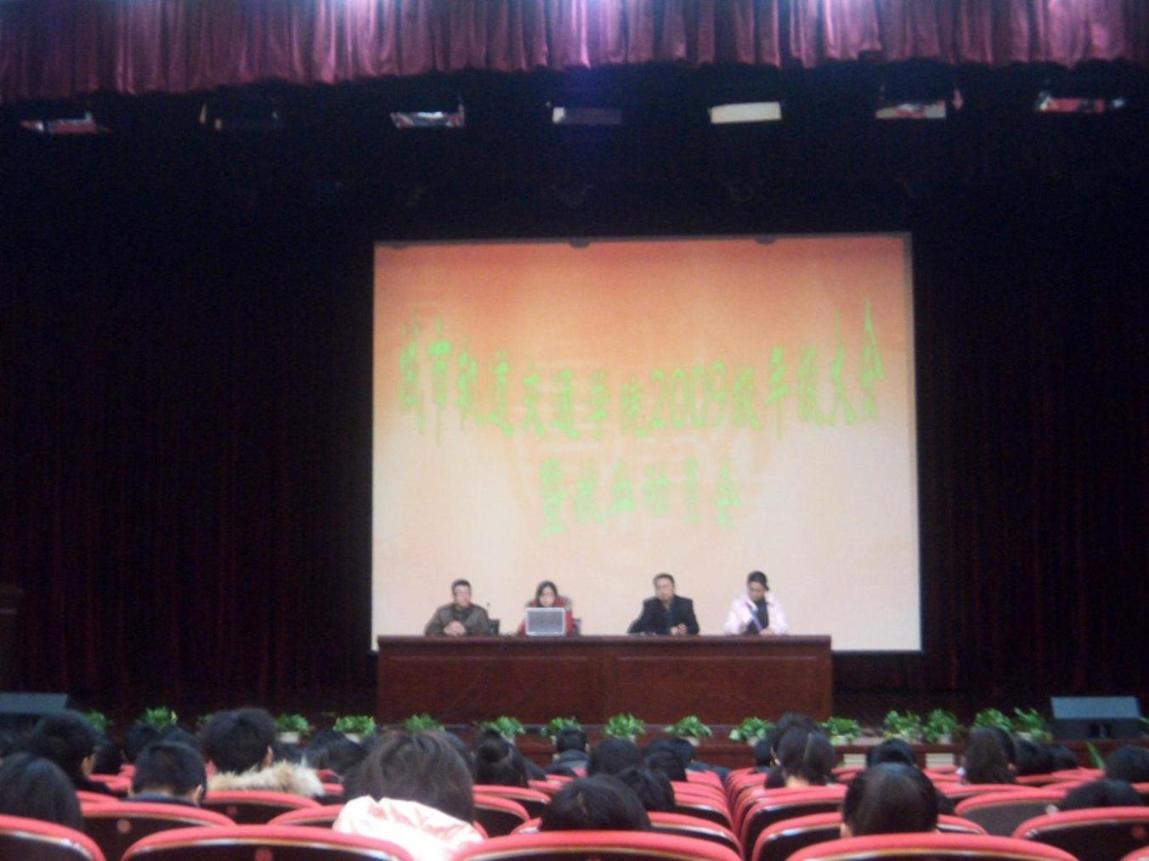 3月22日17:00,城市轨道交通学院于图文信息中心志宏堂举行了2009级年级大会暨献血动员会,参与本次会议的有城市轨道交通学院党总支副书记徐建华老师、2009级辅导员刘景军老师、黄秀玲老师、校医务室主任王文仙医生以及学院2009级400余名学生。动员会由2009级辅导员刘景军老师主持。