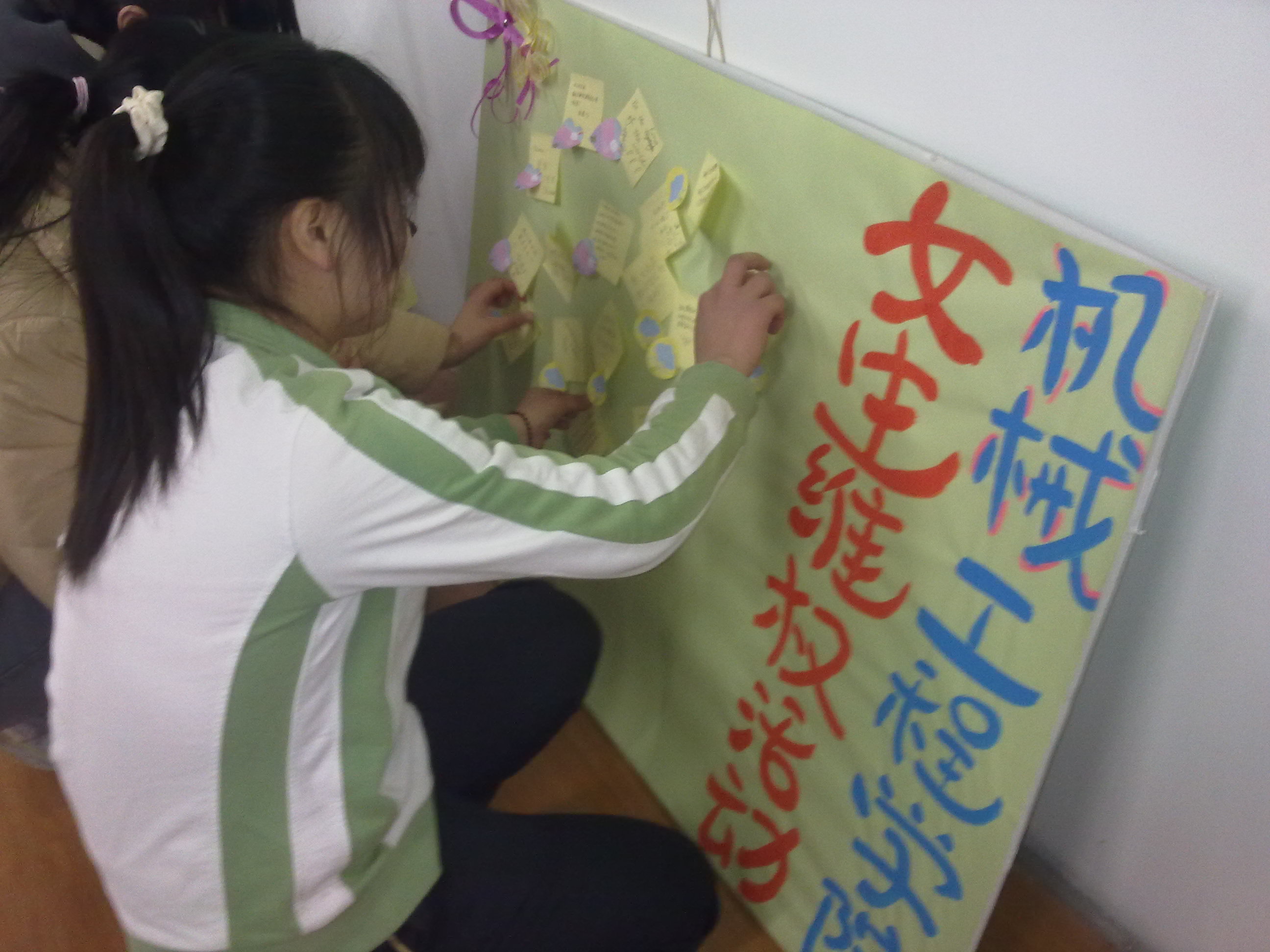 通过以上两个环节,在学院特别准备的留言板上,女生们相继留言,一句句勉励女性的话语跃然纸上,展现出同学们强烈的维权意识和自强的信心。在将近一个小时的活动中,同学们受益匪浅,最后为纪念这次有意义的活动,在场所有女生一起合影留念。