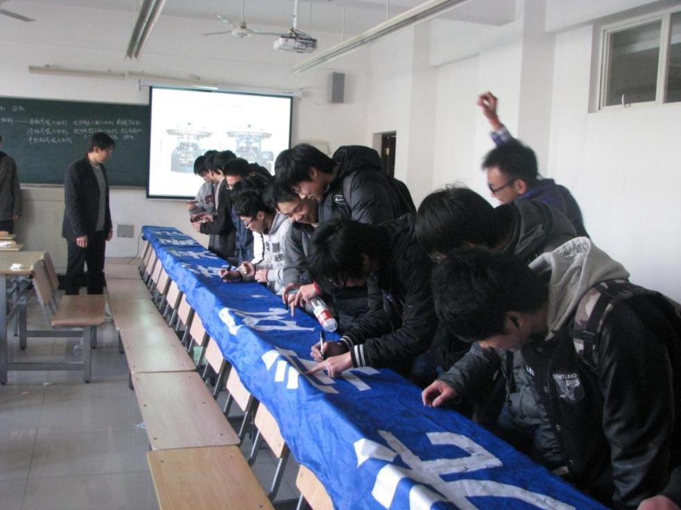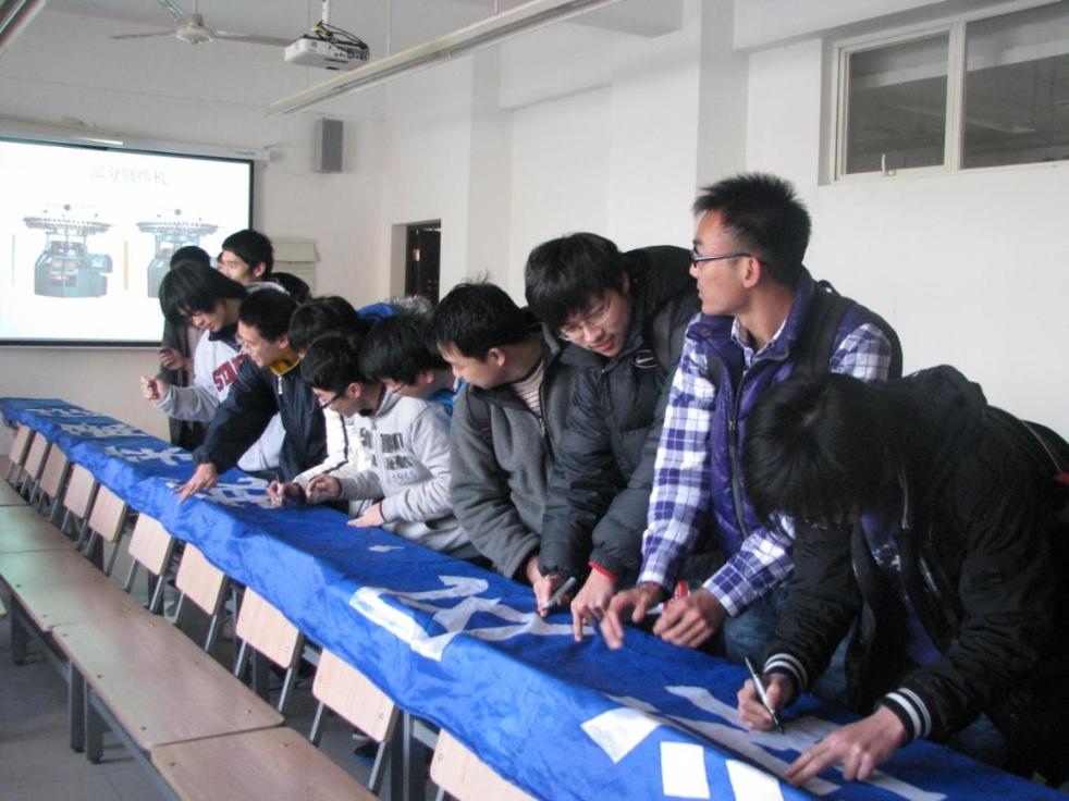 为响应学风建设,3月11中午12:00,由电子电气工程学院学术部发起的“阳光学风,我来承诺”签名仪式在教学楼B210举行,学院分团委书记姜剑老师主持此次签名仪式。此次活动赢得了学院众多同学的踊跃参与。 活动中,同学们表现得都很积极,在印有“阳光学风,我来承诺”的蓝白横幅上纷纷签上大名,并写下自己的承诺,表示会信守诺言,努力为创建良好的学习氛围做出一份贡献。 本次活动的开展旨在学生为自身建设打下坚实基础,努力学好专业知识,养成良好的学习习惯,创造文明的学习环境。