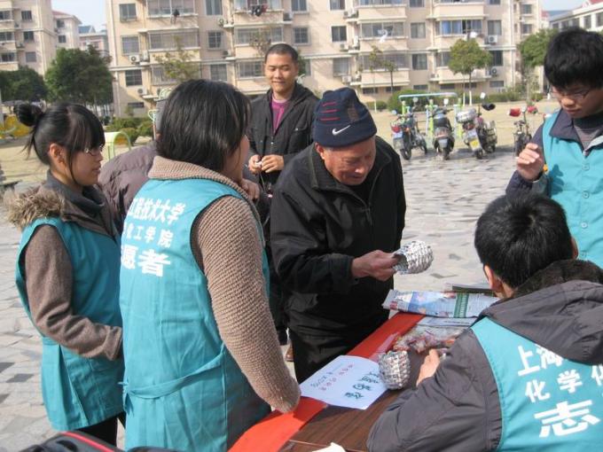 3月11日下午14:00,化学化工学院科学商店一行在部长谭彬雯的带领下,来到松江区永丰街道玉乐小区开展以“绿色生活,废物利用,低碳环保”为主题的宣传活动。