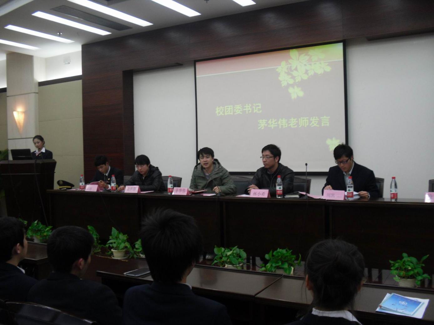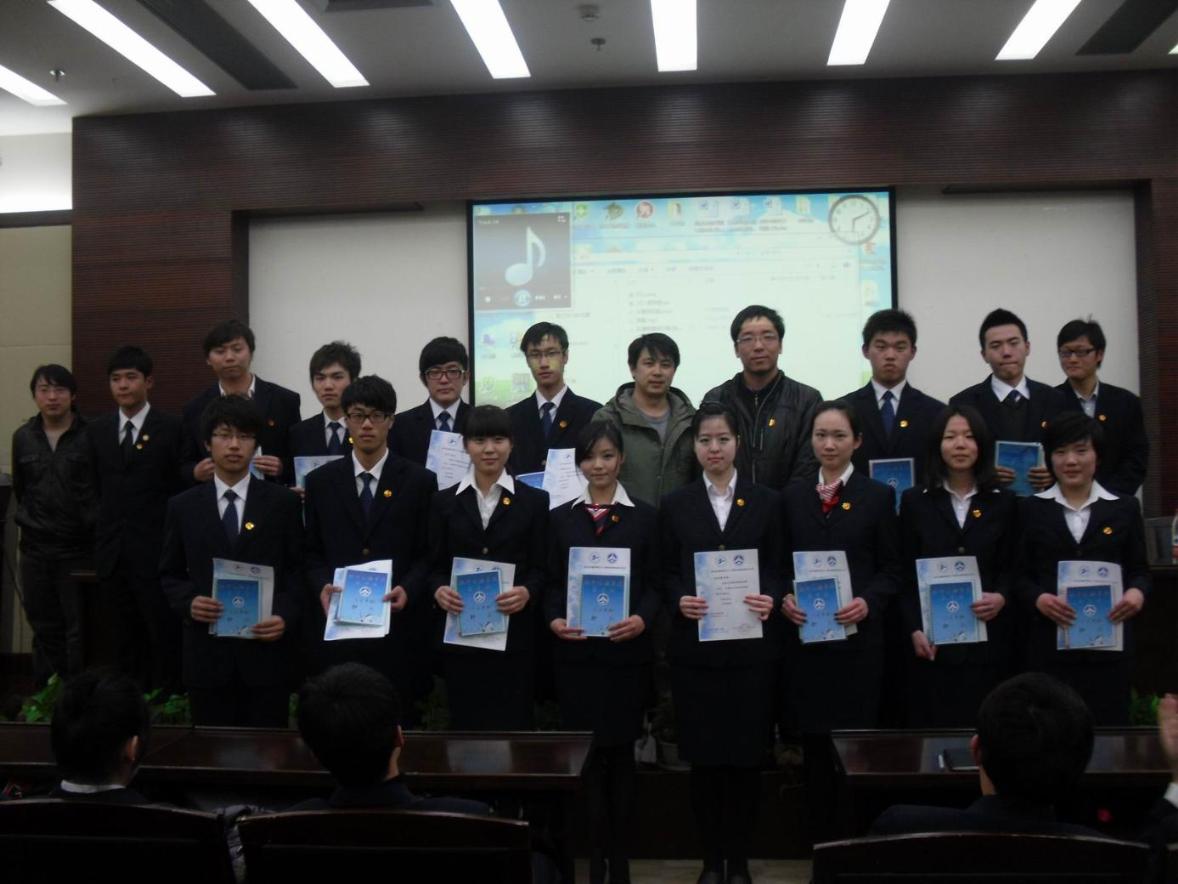 本次闭幕式包括9个议程,其中最主要的是草案的最终表决和新一届团学联部长任命仪式。经过在场115位代表的表决,在符合章程的前提下,所有的草案得到通过。随后,从百忙之中抽空而来茅华伟老师和林小希老师主持了新一届团学联部长的任命仪式,并向新一届部长颁发了任命书和部长护照。另外,茅华伟老师对去年航空运输学院团学联的发展给予了高度肯定,并对今年学院的团学联发展提出了新的期望。最后,茅老师特地为航空运输学院0842082颁发了上海市授予的“优秀团组织”荣誉证书。
