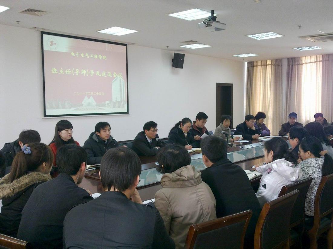 2月25日12:00,电子电气工程学院全体班主任老师及辅导员在行政楼B402召开了电子电气学院班主任(导师)学风建设会议。王裕明院长、学院党委茅蕾书记、王东阳副书记参加了本次会议。