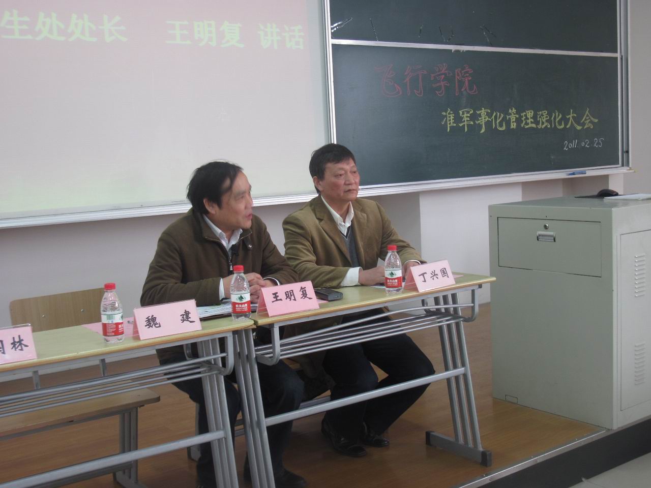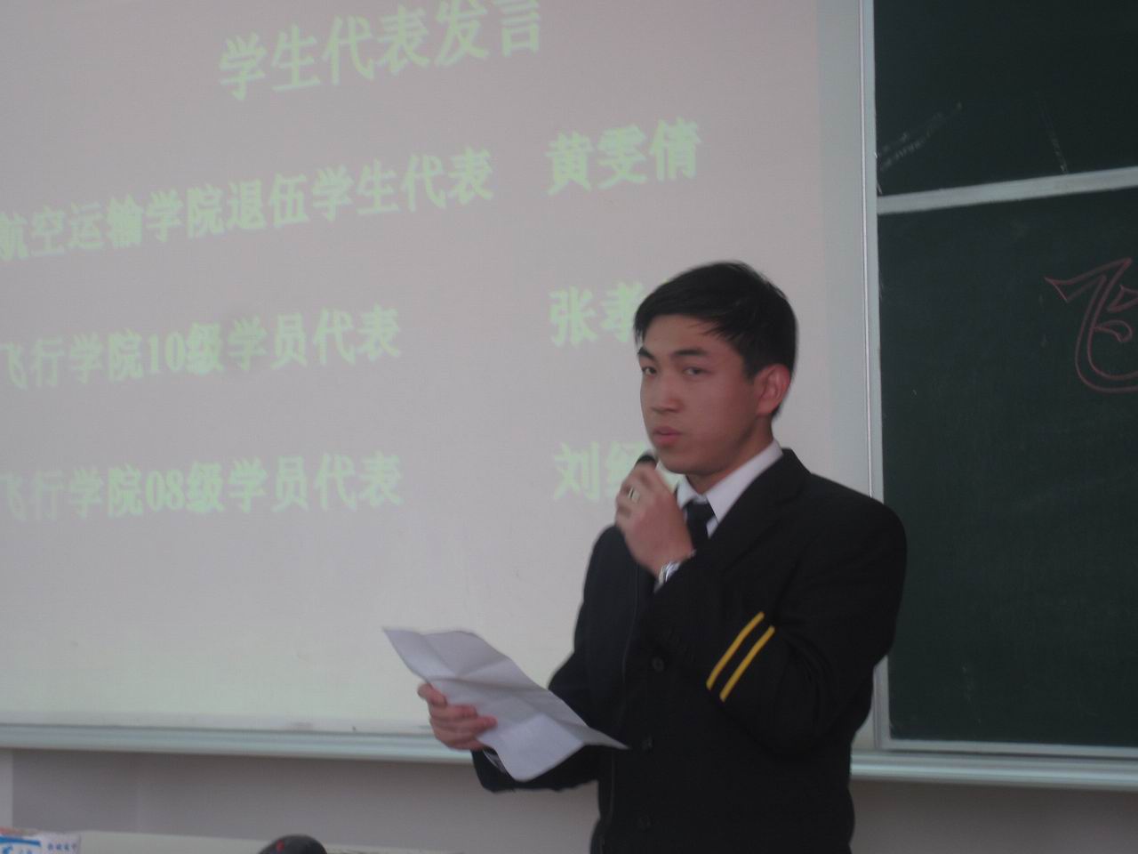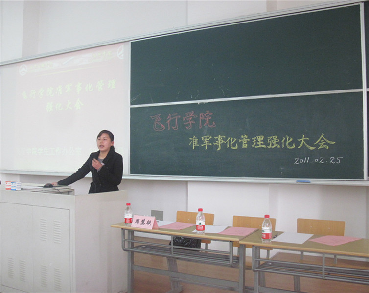 自2010年11月19日飞行学院举行了准军事化管理动员大会以来,为了进一步强化飞行学员的自主管理意识,2011年2月25日,下午1:00在F320召开了飞行学院准军事化管理强化大会,此次大会由航空运输学院党总支副书记周慧艳主持,飞行学院院长丁兴国,学生处处长王明复,飞行学院副院长徐宝钢,教学副院长匡江红,教导员杨永昌老师,辅导员陈鑫老师以及学院飞行技术教研室的全体教师受邀出席了此次会议。 大会开始,航空运输学院2010年退伍女兵王雯倩,飞行学院10级学员代表张孝吴,08级学员代表刘经涛三位学生代表用朴实而真挚的语言分别介绍了自己在空军部队服役的经历,作为飞行学院的新生和老生在日常学习生活中对准军事化管理模式的体会和感受。随后,院长丁兴国老师用风趣而不乏深刻的语言结合自己几十年的飞行经验为全体学员进行了一次思想的洗礼,在谈话中号召全体学员应将“祖国为上,人民为重,事业为先,感恩为天”的“四为”精神作为贯穿自身三年的学习生活及未来从事的事业。从百忙中抽身赶来的学生处处长王明复老师用生动而充满激情的话语,对全体学员一直以来的在各方面做出的努力及取得的成绩给予了极大的肯定,在此基础上向全院师生提出了坚持不懈,将飞行学院打造成我校 “西点军校”的殷切希望。随后,全体学员在08级学生代表缪奕峰的带领下,进行了庄重的守纪宣誓仪式。最后,航空运输学院党总支副书记周慧艳通过“组织”、“制度”、“成绩”、“学风”、“感恩”、“爱国”12个字对学院推行准军事化管理的目的、意义与具体要求做了总结与概括。 通过这次大会,全体飞行学员都更加充分的认识到自己在未来职业中肩负的重任,对今后严格遵守学院风纪,努力拼搏树立了更加坚定的信心,期待自己在新的学期能够取得更加骄人的成绩。