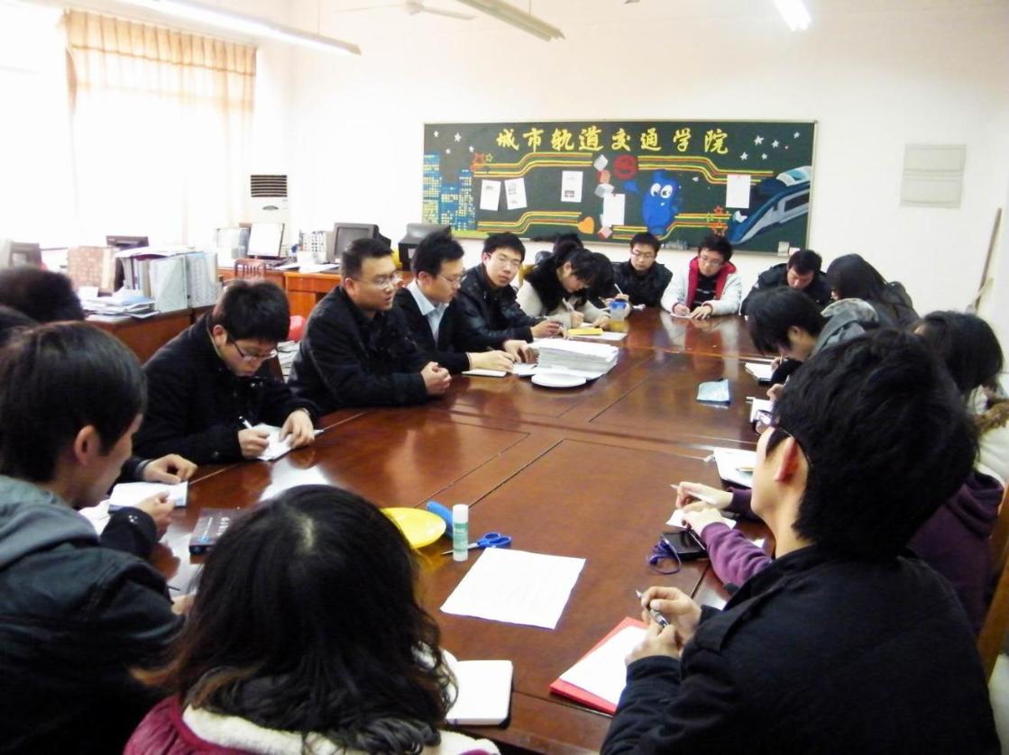 2月24日下午16:30,城市轨道交通学院分团委学生会于教学楼C109学院办公室召开2011年度第一次分团委学生会部长例会。会议由分团委书记闫冰老师主持,学院党总支副书记徐建华老师及分团委学生会各部长参加了本次会议。