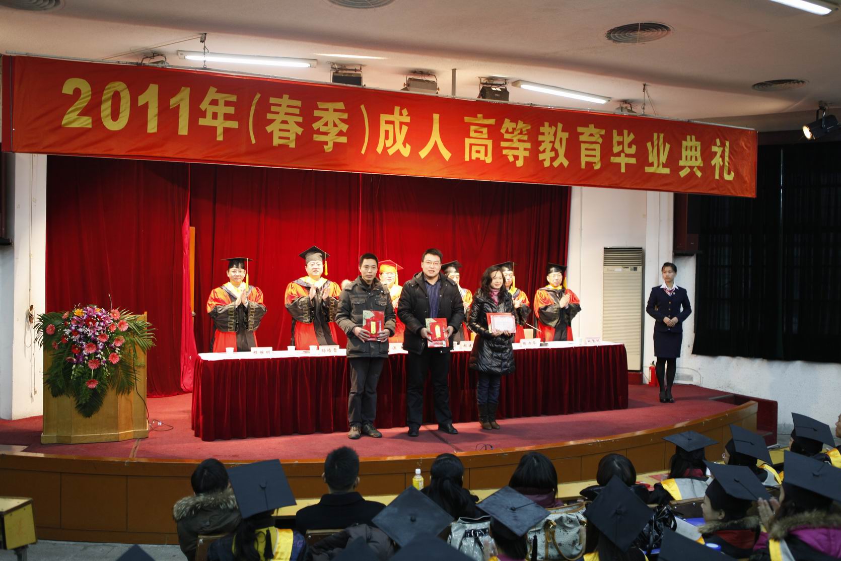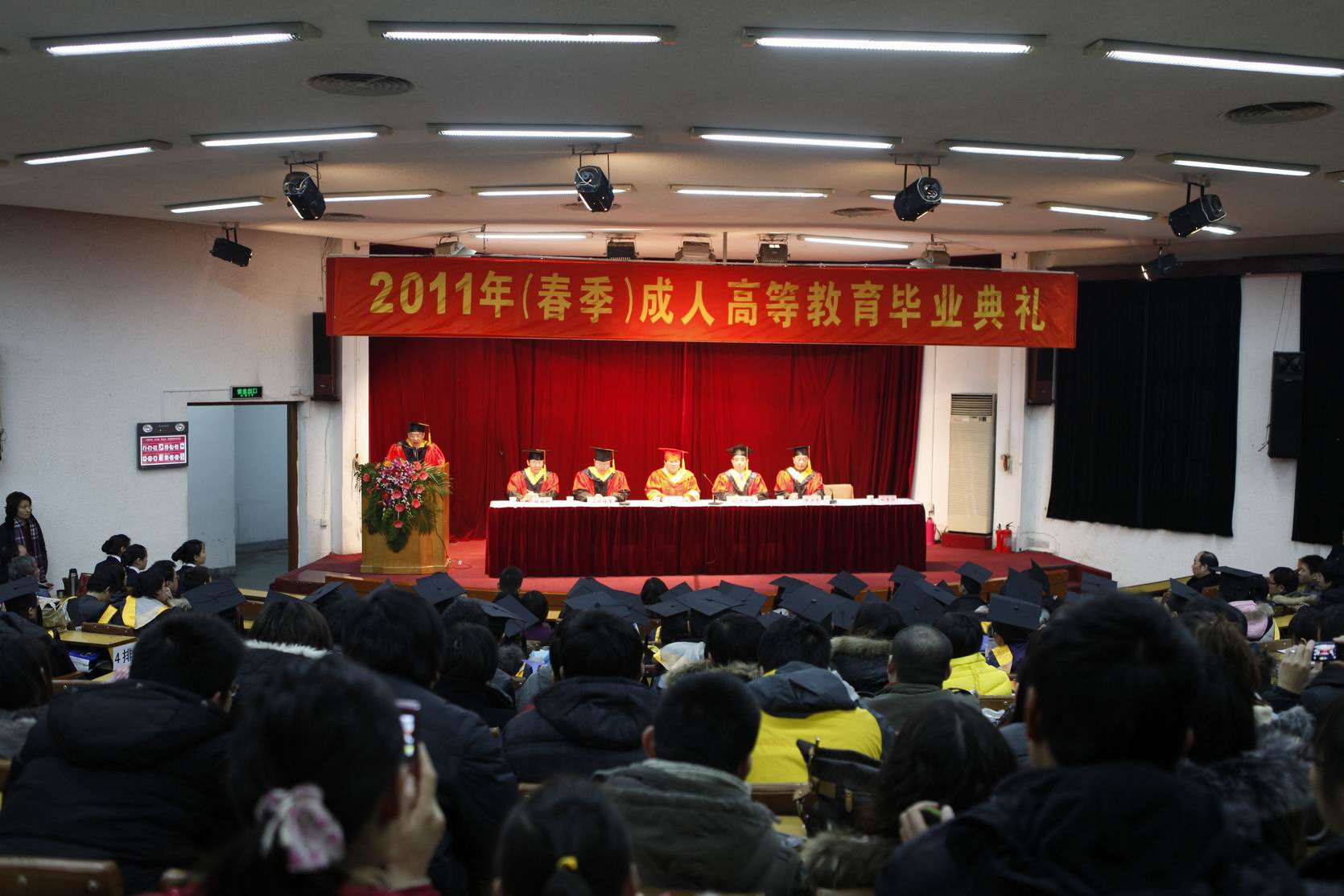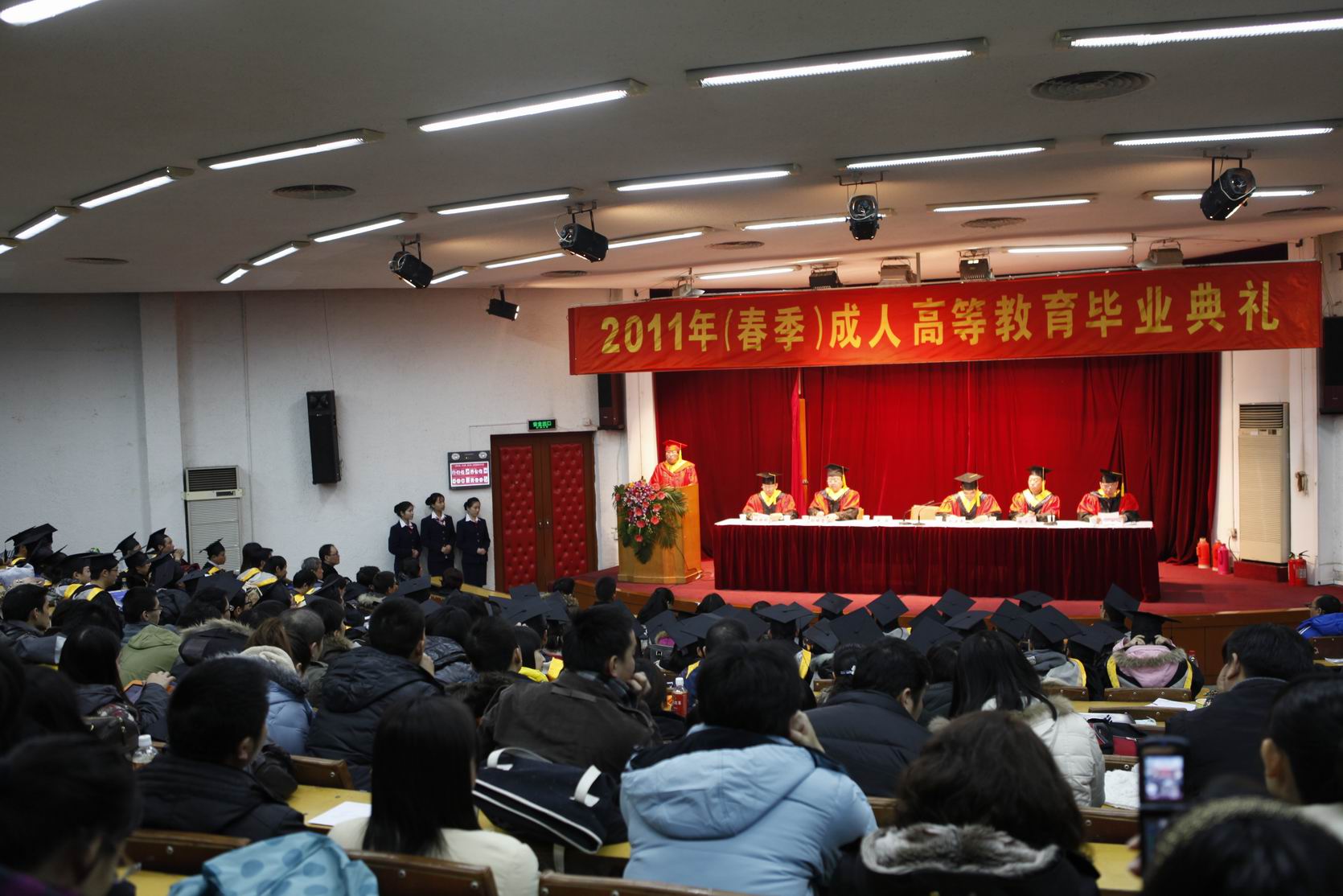 2011年1月23日上午,我校2011年(春季)成人高等教育毕业典礼在仙霞路校区演讲厅隆重举行。汪泓校长、郝建平、孙培雷、陈力华、程维明四位副校长出席了毕业典礼,继续教育学院姚黎明院长、张玫欣副院长、相关二级学院分管领导以及全体毕业生共300多人参加了毕业典礼。毕业典礼由陈力华副校长主持。