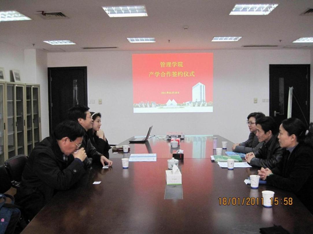 虞蓉老师向上海港国际客运中心公司介绍了我校产学合作教育的特色人才培养模式及学院产学合作具体开展和发展情况。吴忠老师从我校依托支柱产业、服务地区经济,创建特色地方大学介绍了我校产学研合作教育理念、开展模式及取得的各种最新的合作、科研成果,并表示希望与单位建立进一步的长期合作关系,建立专业实习基地等内容,最终实现合作双赢。邱玲老师就管理学院与上海港国际客运中心公司人才需求比较吻合的市场营销、物流管理、财务管理、人力资源管理等专业设置和学生培养情况进行了重点介绍。上海港国际客运中心公司对工程大的发展速度、合作教育的复合人才培养模式表示了赞赏,并对公司发展和企业文化等内容进行了介绍,最后,吴忠院长和上海港国际客运中心公司代表签署了“共同建立产学合作教育基地的协议书”并合影留念。