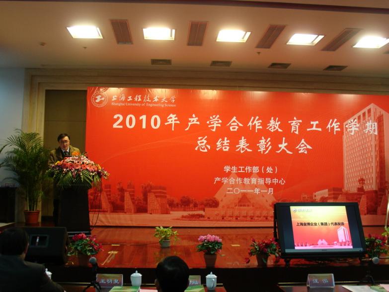 下午上海博大企业(集团)有限公司参加了我校的“2010年产学合作教育工作学期总结表彰大会”,获得我校产学合作教育优秀单位,研发中心总监陶冶作为优秀单位代表在大会上做了交流发言。