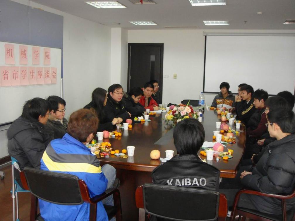 春节将至,外省市同学即将回家过年,学院领导和老师们一直牵挂着他们在校的学习生活情况。 1月11日下午15:00,机械工程学院在行政楼1211会议室召开了外省市学生座谈会,会议由赵晔��老师主持,各年级辅导员老师以及08、09、10级外省市学生代表参加了本次座谈会。