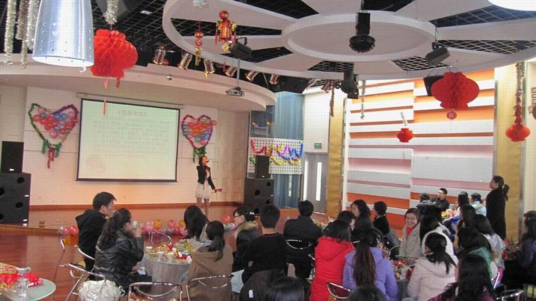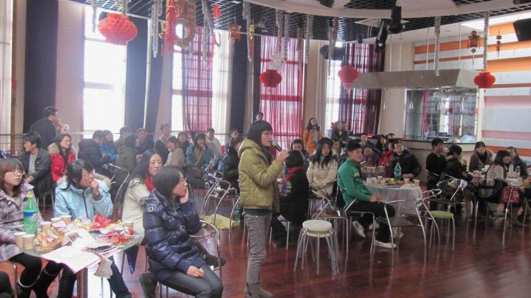 首先,由学院党委书记吴清老师向广大同学致以节日的问候,并鼓励同学们新年新气象;学院党委副书记虞蓉老师就2010年度的学生工作取得的成绩作了讲解和2011年度工作展望作了交流。同学们围桌而坐,品尝点心,观看节目。同时,互动游戏不断,现场气氛十分活跃。学院领导也积极地参与了活动,吴清老师一曲《月亮代表我的心》、虞蓉老师一首《爱我的人和我爱的人》、邱玲老师一段《后来》,以及胡斌老师的家乡话表演,充分调动起现场气氛,同学们无不为老师们的多才多艺而赞叹。同学们也争先恐后点歌高唱,现场氛围热烈温馨。10级韩�T同学的一段武术表演,则将联谊会推向另一个高潮。穿插在联谊会中间的是一个个的互动游戏,像“快乐问答”、“方言秀”、“抢座位”等游戏,调动了同学们的积极性,尤其是“方言秀”这一小游戏,让同学们用自己的家乡话念一段文字,既勾起了同学们的思乡之情,也加深了同学之间的了解。联谊会最后以一曲《朋友》合唱圆满结束。