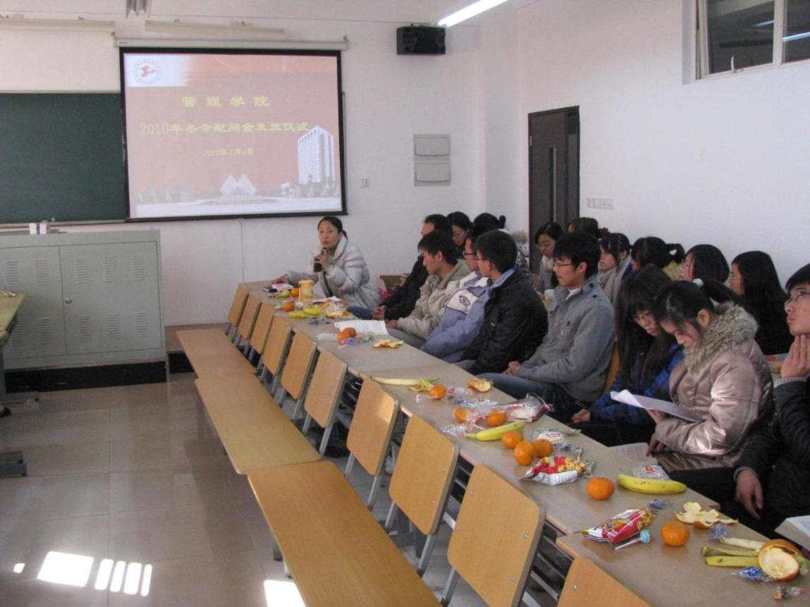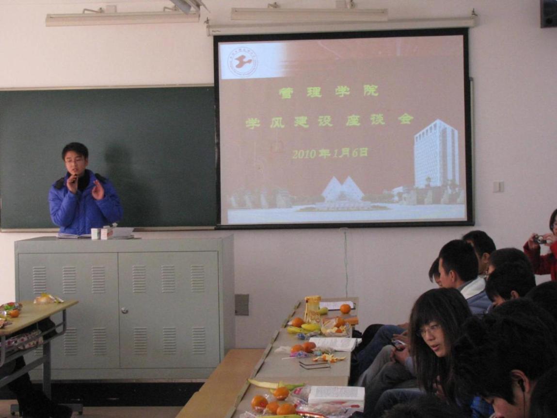 为积极配合2011年“学风建设年”的学生工作主题,管理学院于2011年1月6日13:00,在教学楼D207召开管理学院学风建设座谈会。管理学院党委副书记虞蓉老师,10级辅导员孟飞、丁红娟老师及40余名10级新生代表参加了此次座谈会,会议由分管学风建设辅导员李静老师主持。