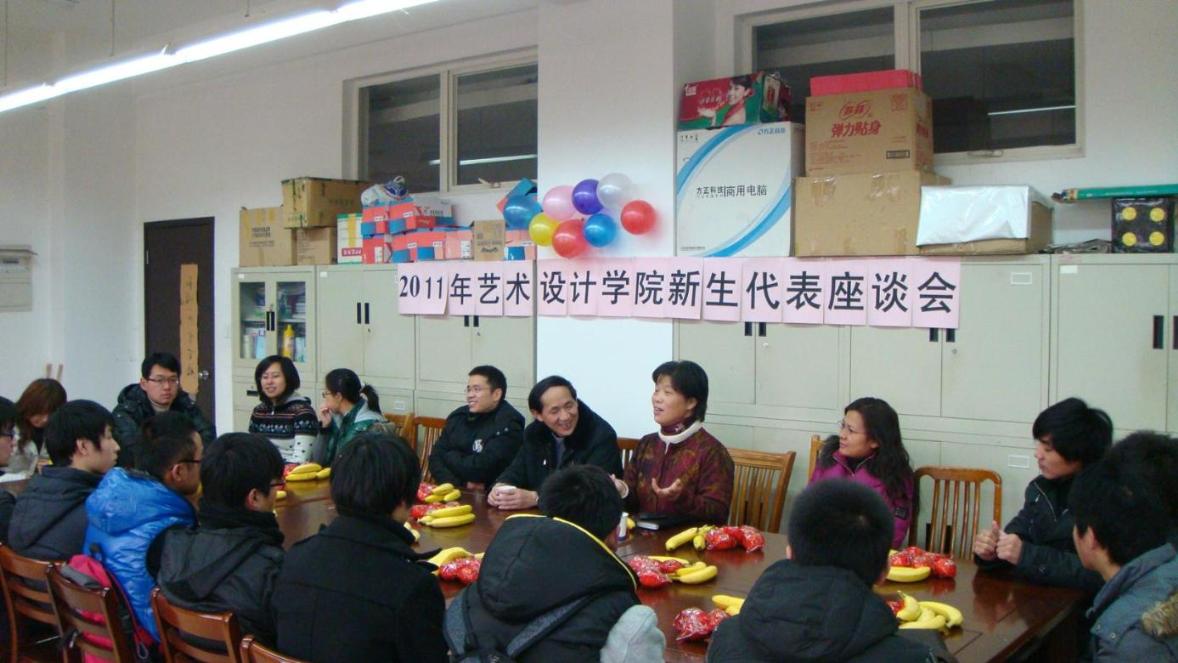 1月5日 中午12:00,浓浓情意在C111办公室弥久不散,2011年艺术设计学院新生代表座谈会在这里召开。院党总支书记潘惠德老师,及全体辅导员老师出席了会议,全院外地生和困难生的部分新生代表参加了会议。会议由总支副书记何志琴老师主持。