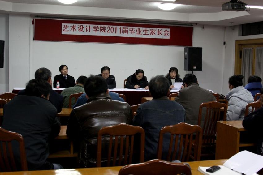 为了进一步增进学校与家长的沟通、配合与信任,做好毕业生的毕业和就业工作, 12月31日晚6:00,艺术设计学院在仙霞路校区行政楼525室召开了主题为“毕业·就业”的2011毕业生家长。院党总支书记潘惠德、院长马新宇、副院长许传宏出席了家长会。2011届辅导员刘江、就业专职教师刘蔚、部分班导师等和学生家长参加了此次会议。院党总支副书记何志琴主持了会议。