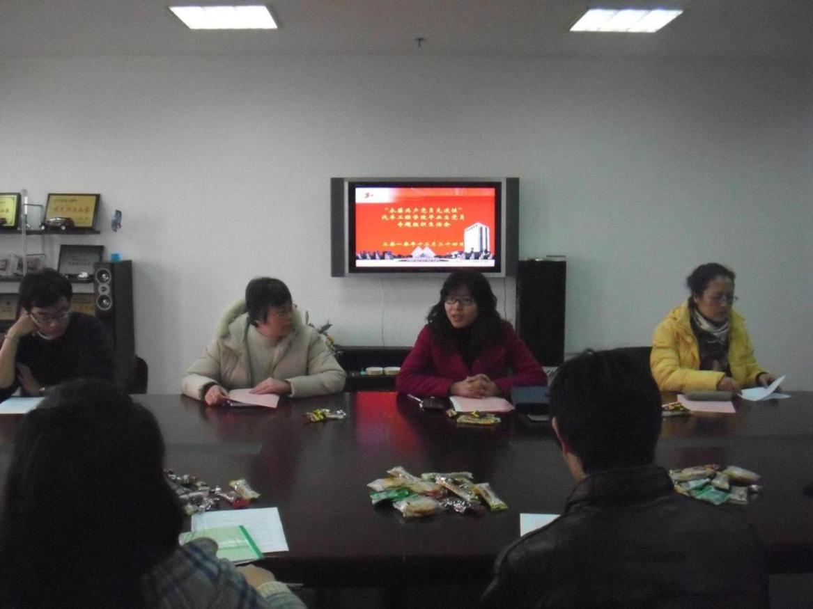 12月27日12:15,汽车工程学院毕业生党员专题组织生活会在行政楼汽车工程学院会议室举行,院党支部书记周洁老师、学院心理辅导员沈丽老师、辅导员叶寅老师,应届毕业生党员和研究生党员参加了本次会议,会议由段海霞老师主持。