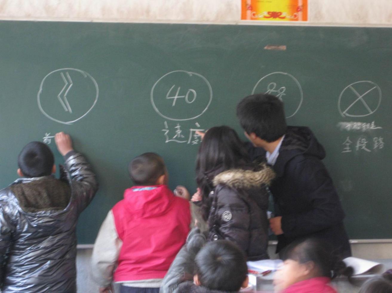 支教活动采用分组教学的方式,分派不同的教员负责各个班级的教学任务。在各教员明确了自己的任务之后,支教活动正式开始,教员们通过对不同的交通标志进行讲解,使得小朋友们对交通安全知识产生了浓厚的兴趣,并都踊跃举手发言,描述自己在日常生活中对交通安全的认识和理解。接着,教员们与小朋友进行了互动,使得整个课堂气氛十分活跃。然而美好的时光总是短暂的,下课的钟声响起,活动结束。教员和小朋友们一起合影留念,用照片记录下小朋友们纯真的笑脸和工程大轨道学子的谦谦风范。最后,所有支教人员在教学楼下合影,以此纪念这次光荣的支教之行。